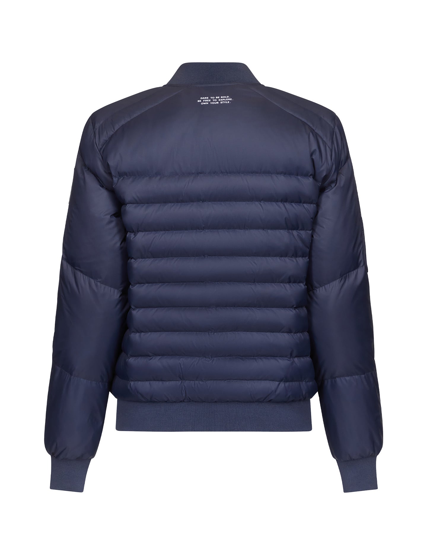 Inspired by the aviator jackets worn by American soldiers during World War One, the Rhona quilted bomber jacket is lightweight and comfortable, with contrasting orange detailing as a nod to the RHONA PAMPA HI DARE shoes.