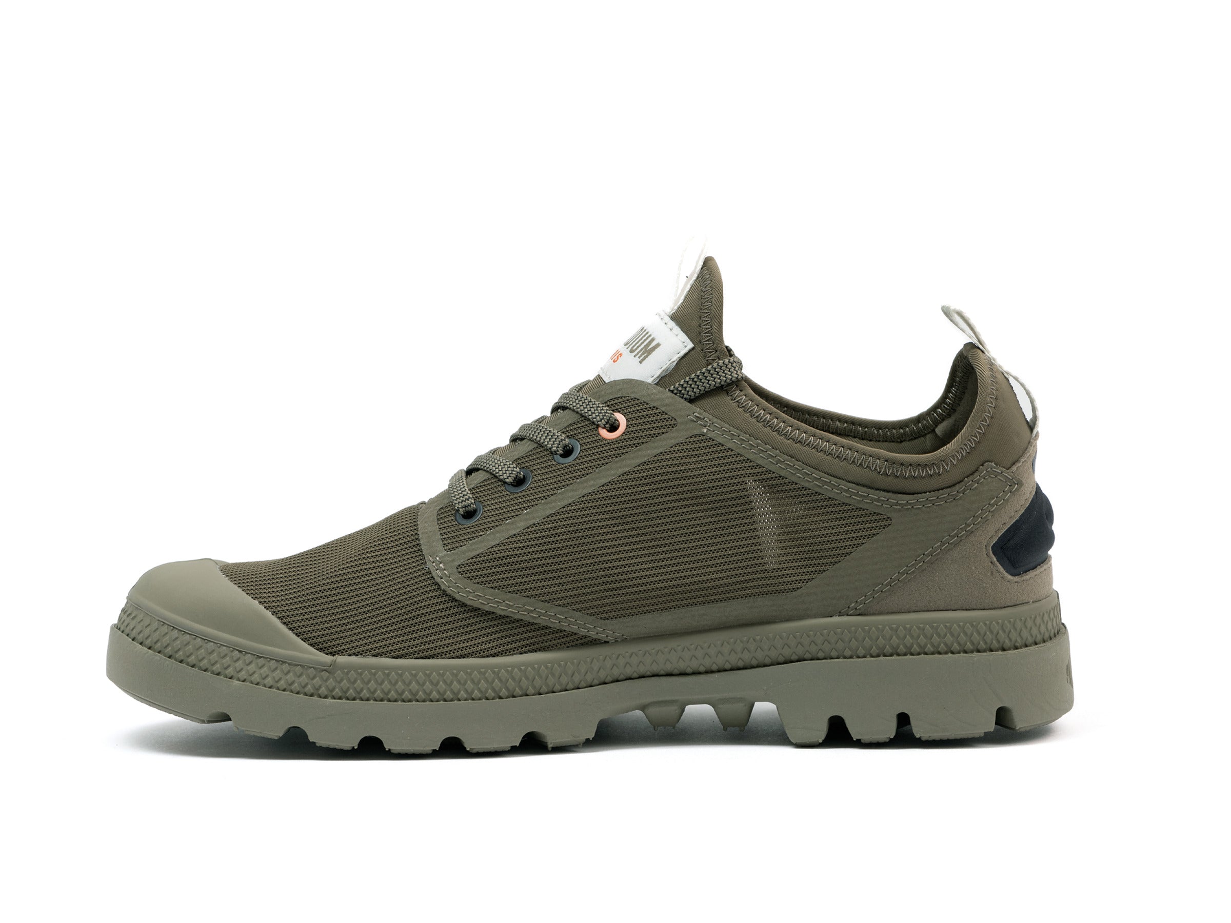 - CARACTÉRISTIQUES : œillets plats, lacets plats, boucle au talon, logo embossé sur le talon
