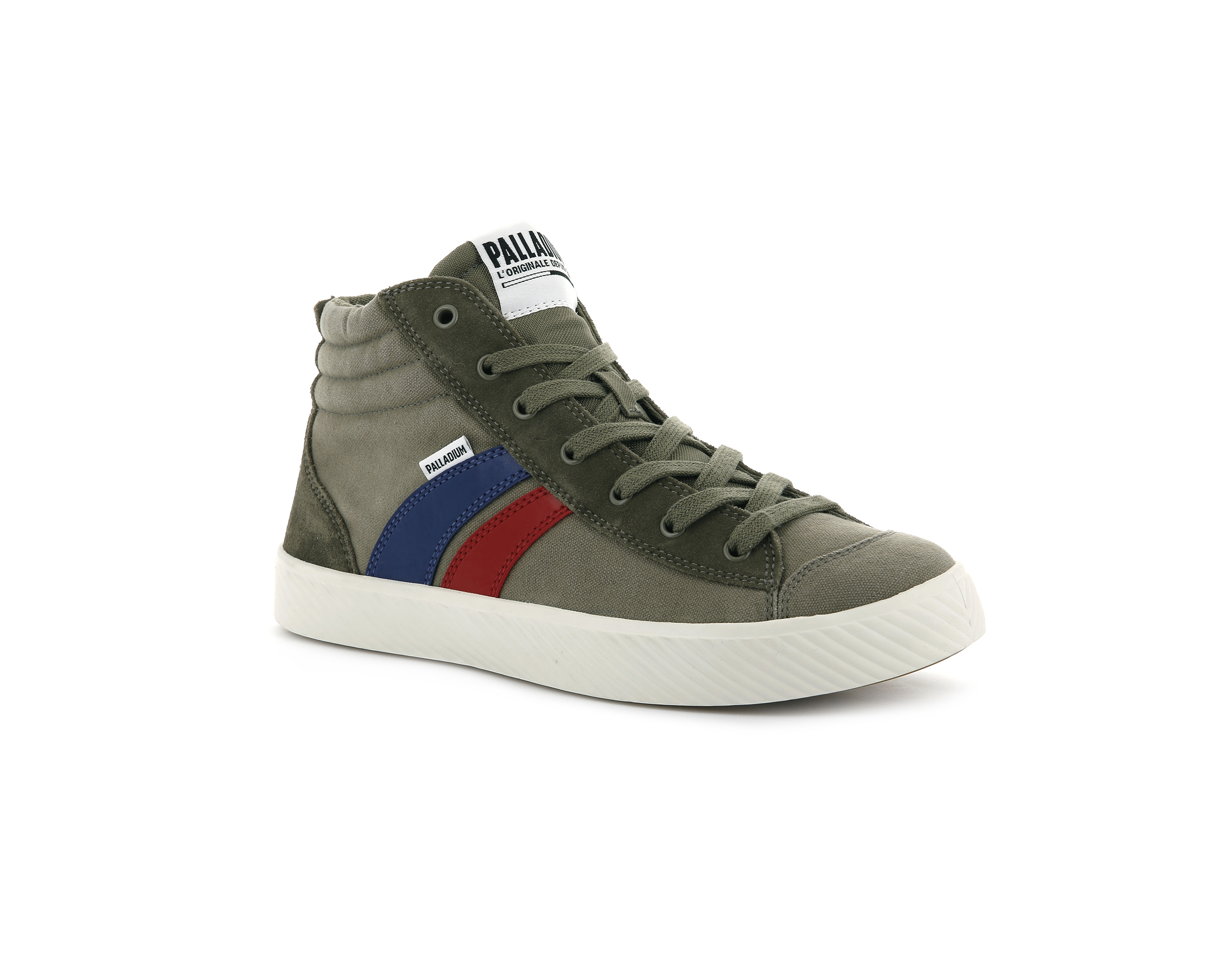 De vintage branding en retro kleuren van deze Pallaphoenix Mids geven een trendy varsity-stijl. De cuff rond de bovenkant is een andere tijdloze touch uit ons archief.