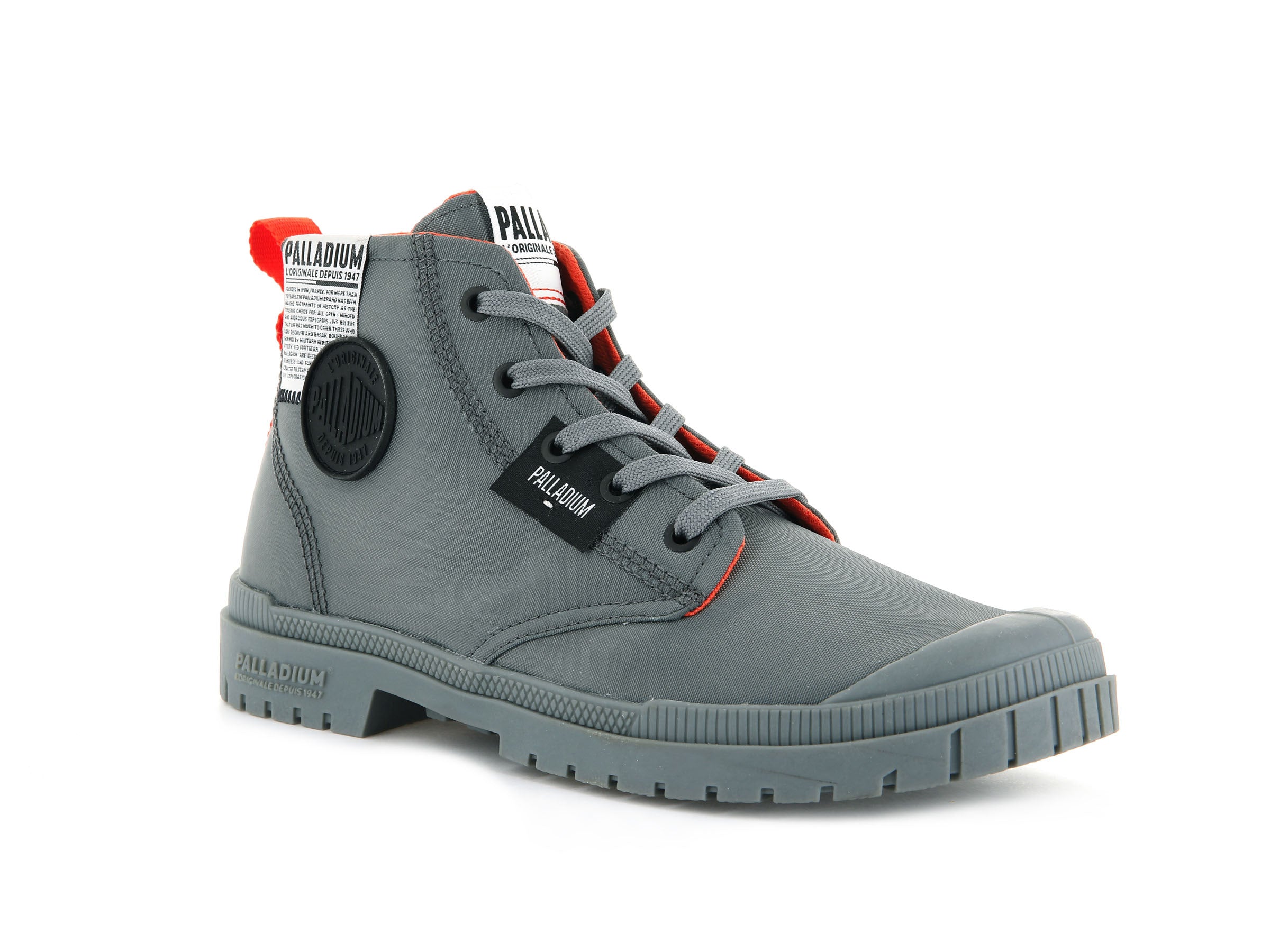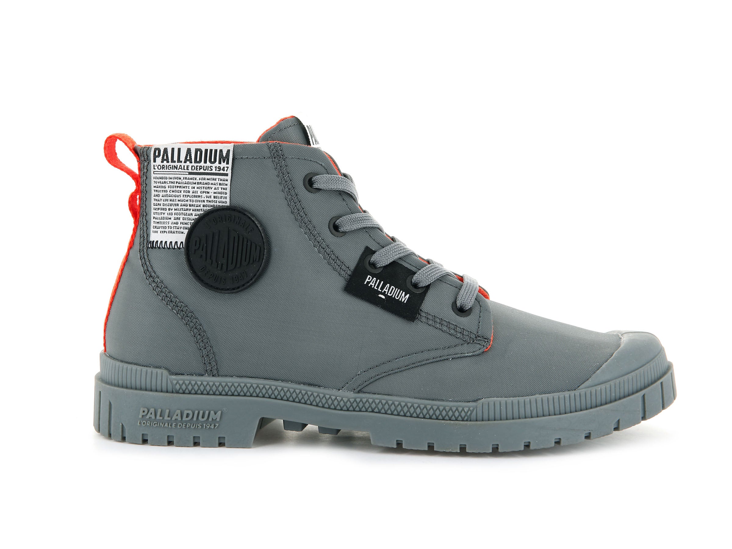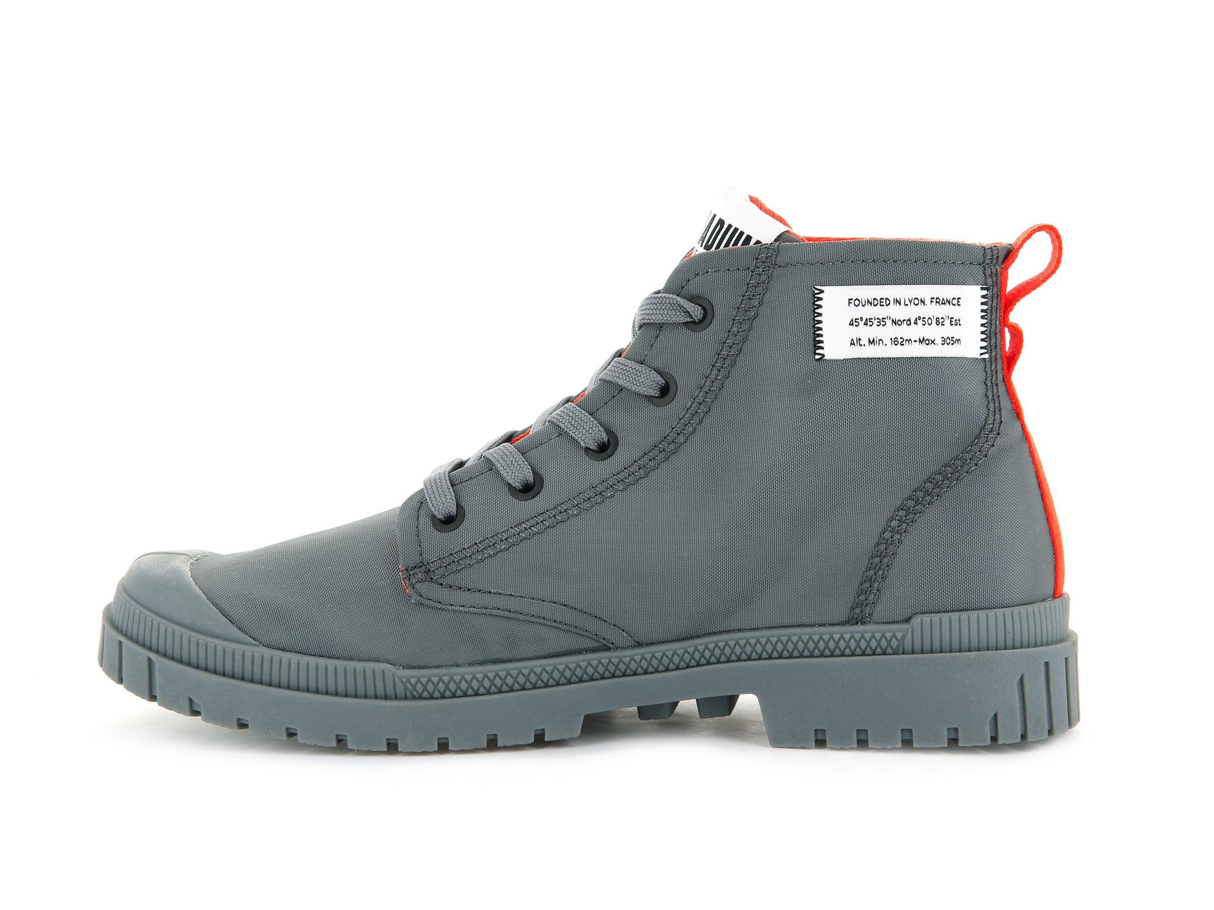 Deze lichtgewicht halfhoge schoenen zijn een nieuwe versie van de SP20, geïnspireerd op de bestverkochte Pampa Overlab. De gedurfde, over het hele oppervlak aangebrachte merkelementen geven hem een modieuze stijl die zich onderscheidt van de imitators. Details zoals de geografische coördinaten en de oprichtingsgeschiedenis van Palladium laten anderen weten dat jij in het bezit bent van de #uniformofthepeople.