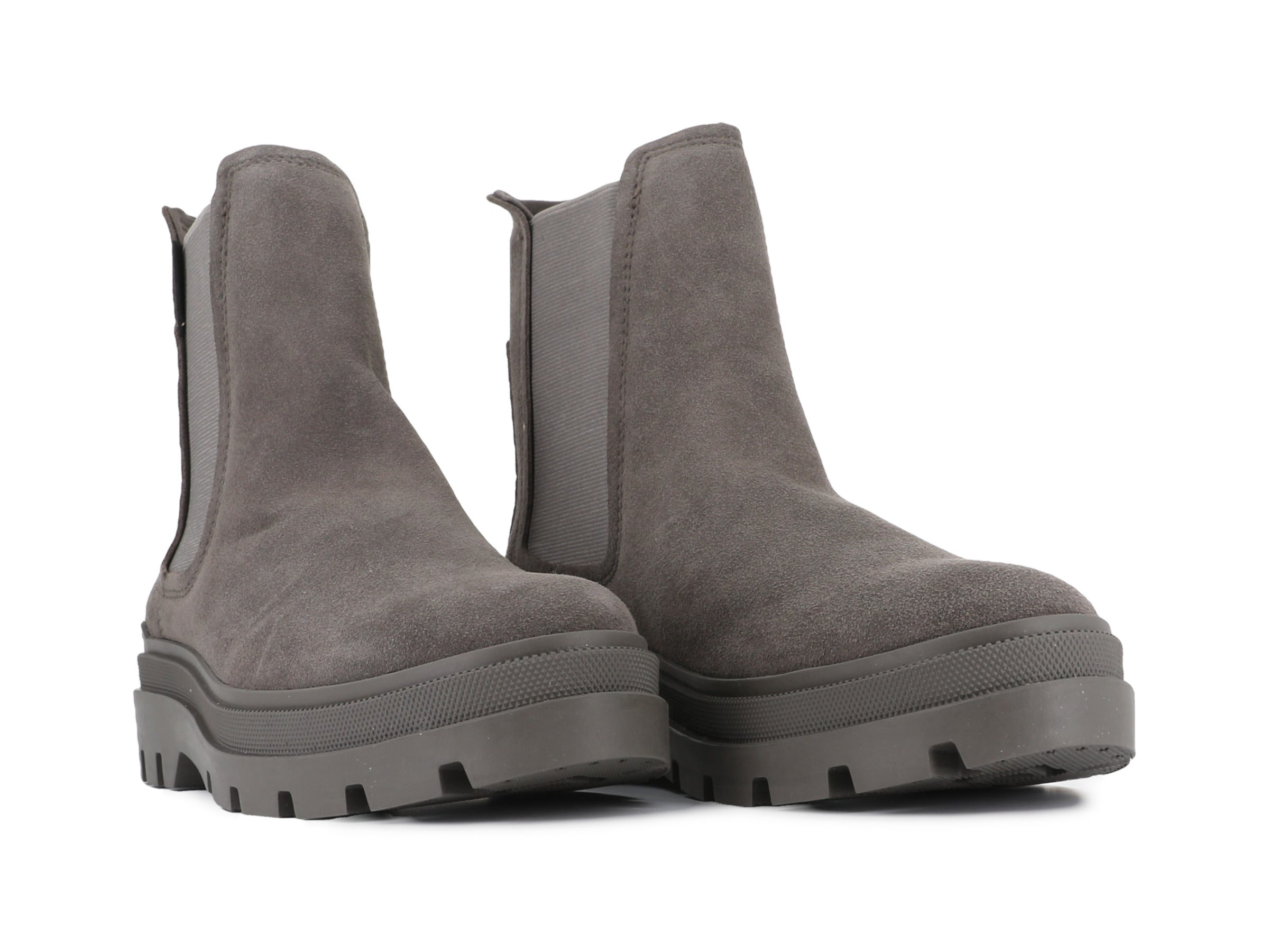 Maak kennis met PALLAGRADE CHELSEA SUEDE, een chique, vrouwelijke twist van de klassieke Chelsea boot. Deze stijlvolle laars, ontworpen met een nieuwe, door vrouwen goedgekeurde buitenzool voor een perfecte pasvorm, combineert het stoere DNA van Palladium met strakke, moderne lijnen. De buitenzool heeft strategisch geplaatste noppen en diamanten foxing, wat zowel duurzaamheid als elegantie toevoegt. PALLAGRADE CHELSEA is gemaakt van zacht suèdeleer en biedt comfort en verfijning, terwijl doordachte details zoals de hiellus en elastische panelen de verfijnde look versterken. Een veelzijdige must-have voor elke stijlvolle garderobe.