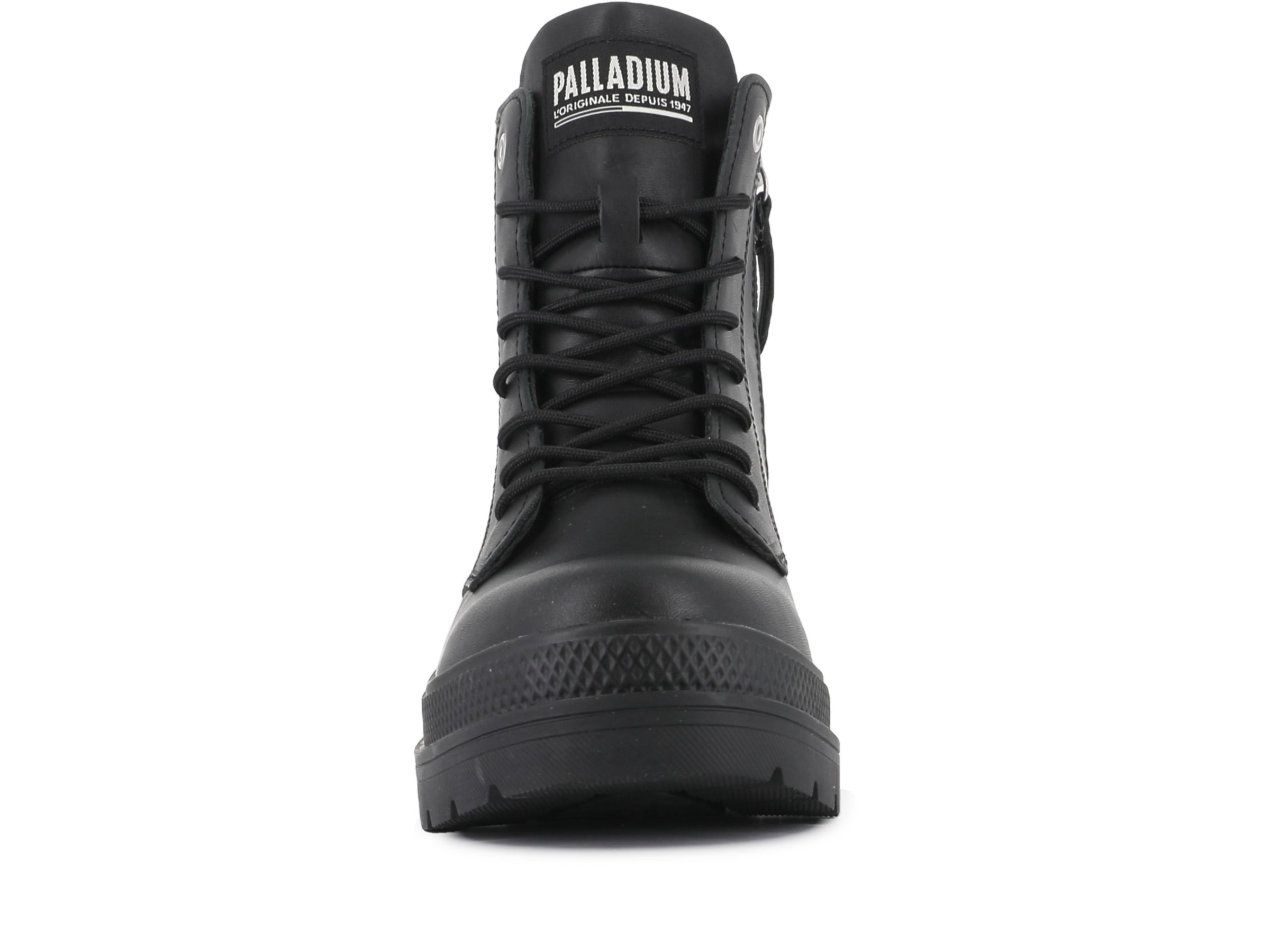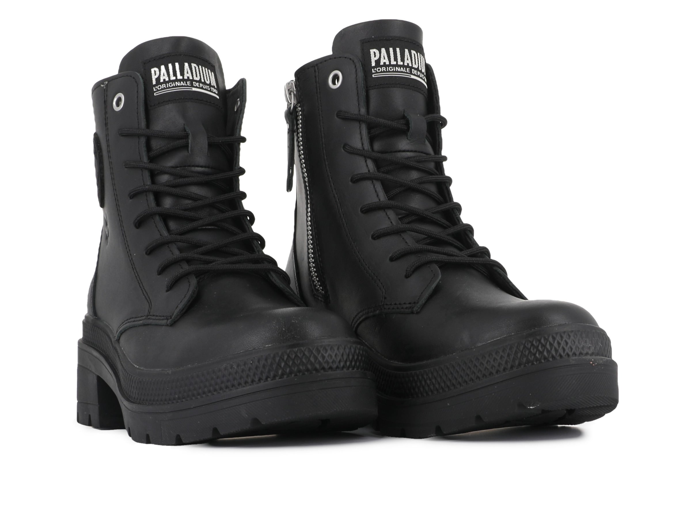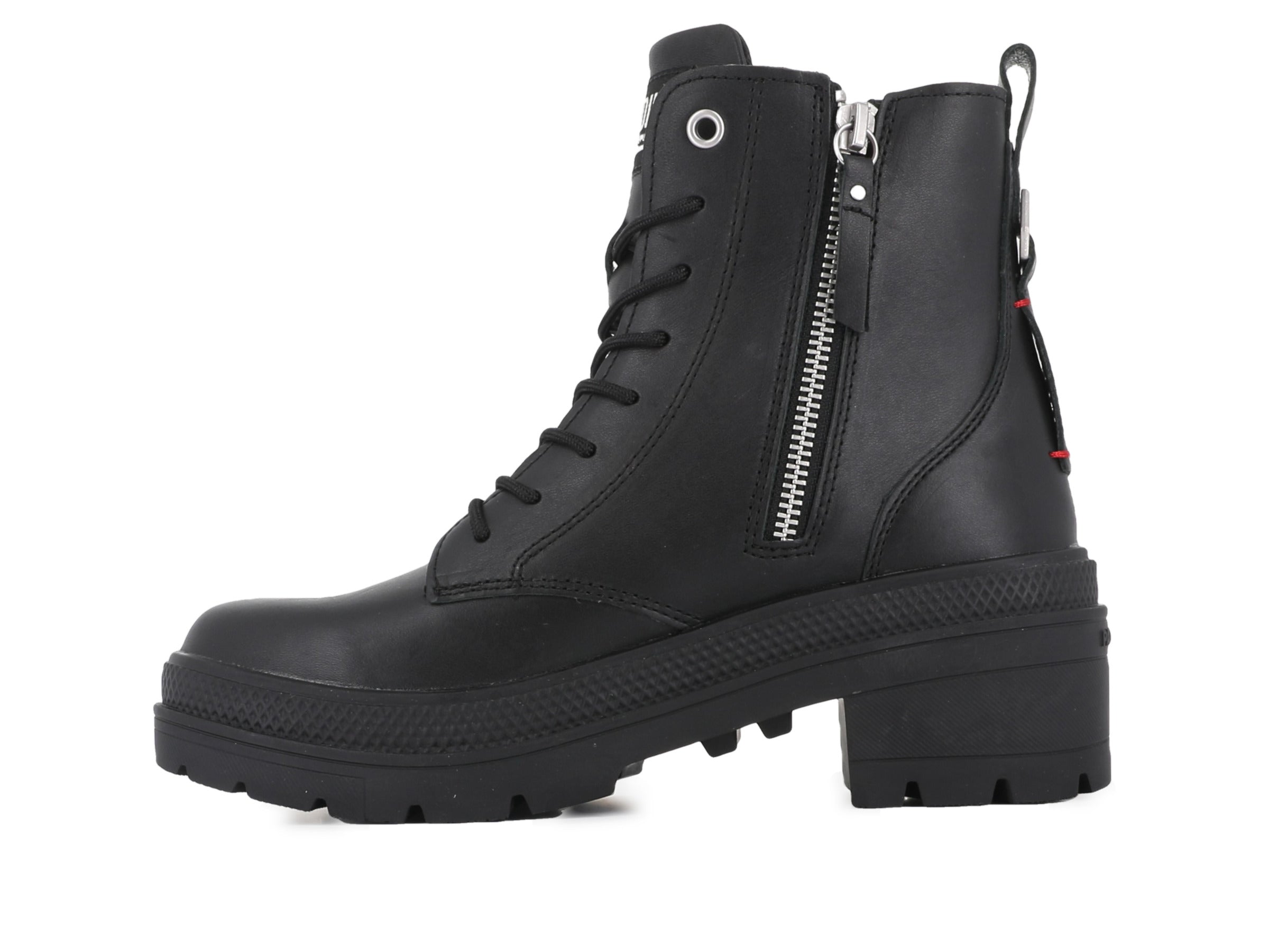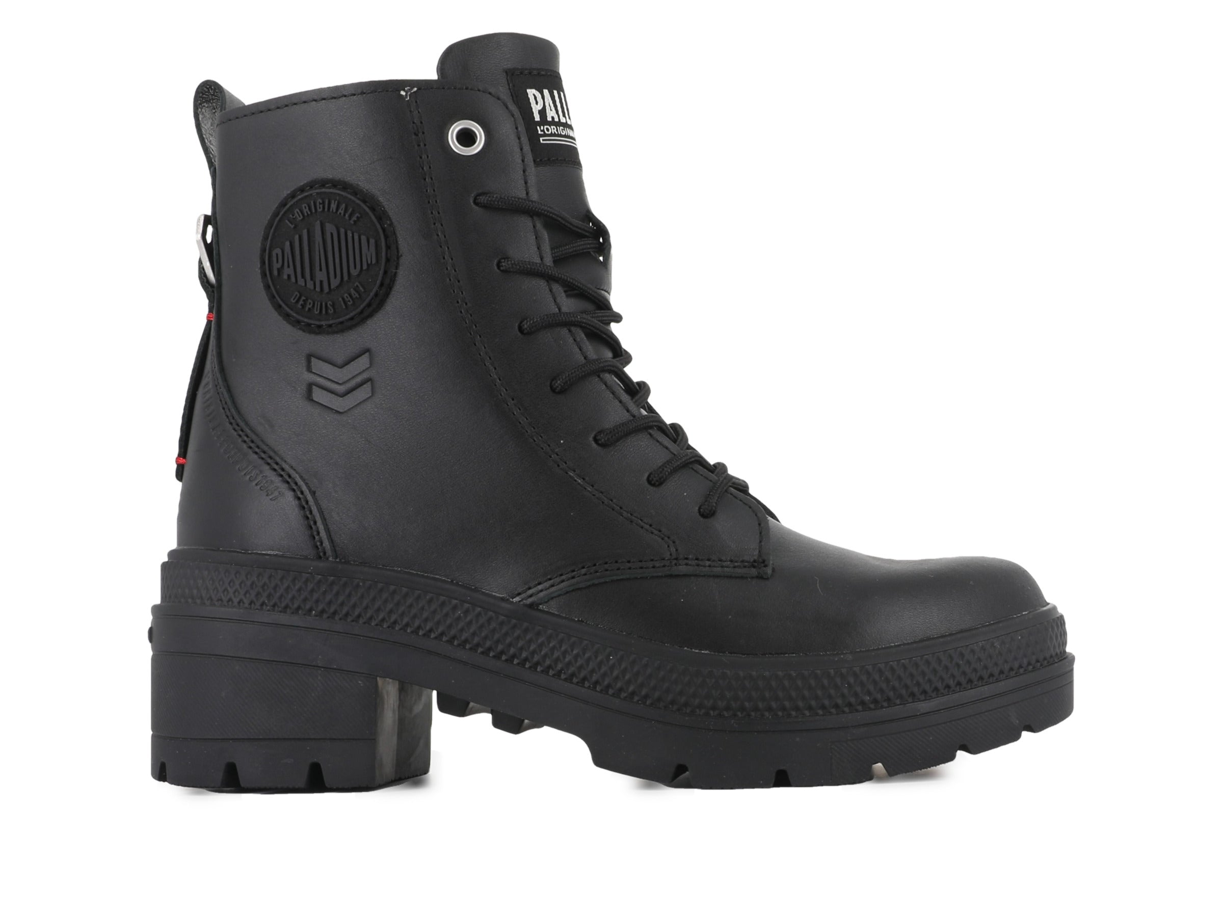 Een gestroomlijnde leren dameslaars die een stedelijke stijl combineert met een vrouwelijke kant. De laars is gemaakt van zacht nappaleer en heeft een clean bovenwerk, een verhoogde hak en een ritssluiting aan de binnenkant voor draagcomfort. Op het leger geïnspireerde details en opvallende branding benadrukken het Franse designerfgoed van Palladium. Perfect voor in de stad en voor een alledaagse statement stijl.